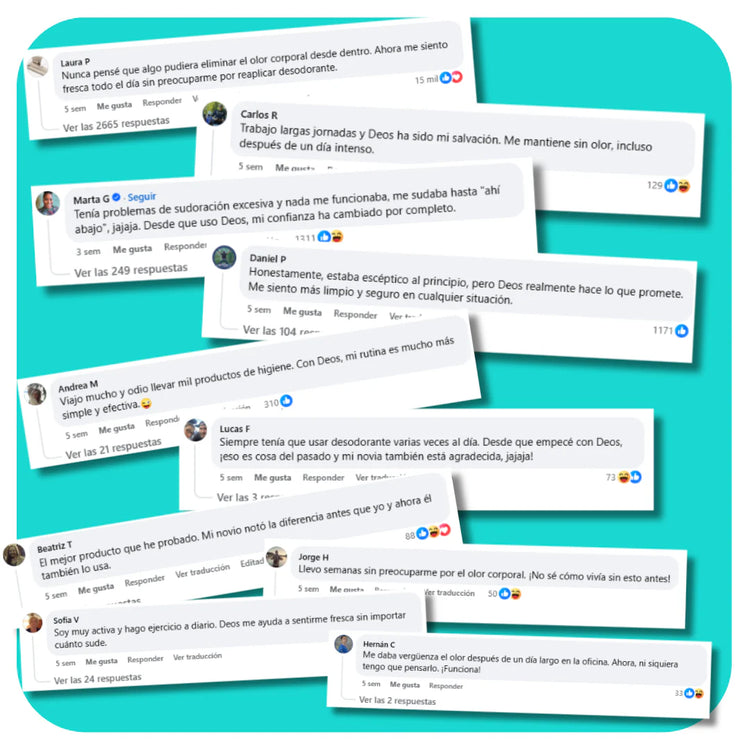 A diferencia de otros productos que requieren semanas para notar algún cambio, Deos™ actúa rápido. En solo una semana, muchas personas reportan una reducción significativa en el mal olor corporal y una mejora en su bienestar general. Su fórmula ayuda a equilibrar tu flora intestinal, eliminando las toxinas que pueden causar olores no deseados.